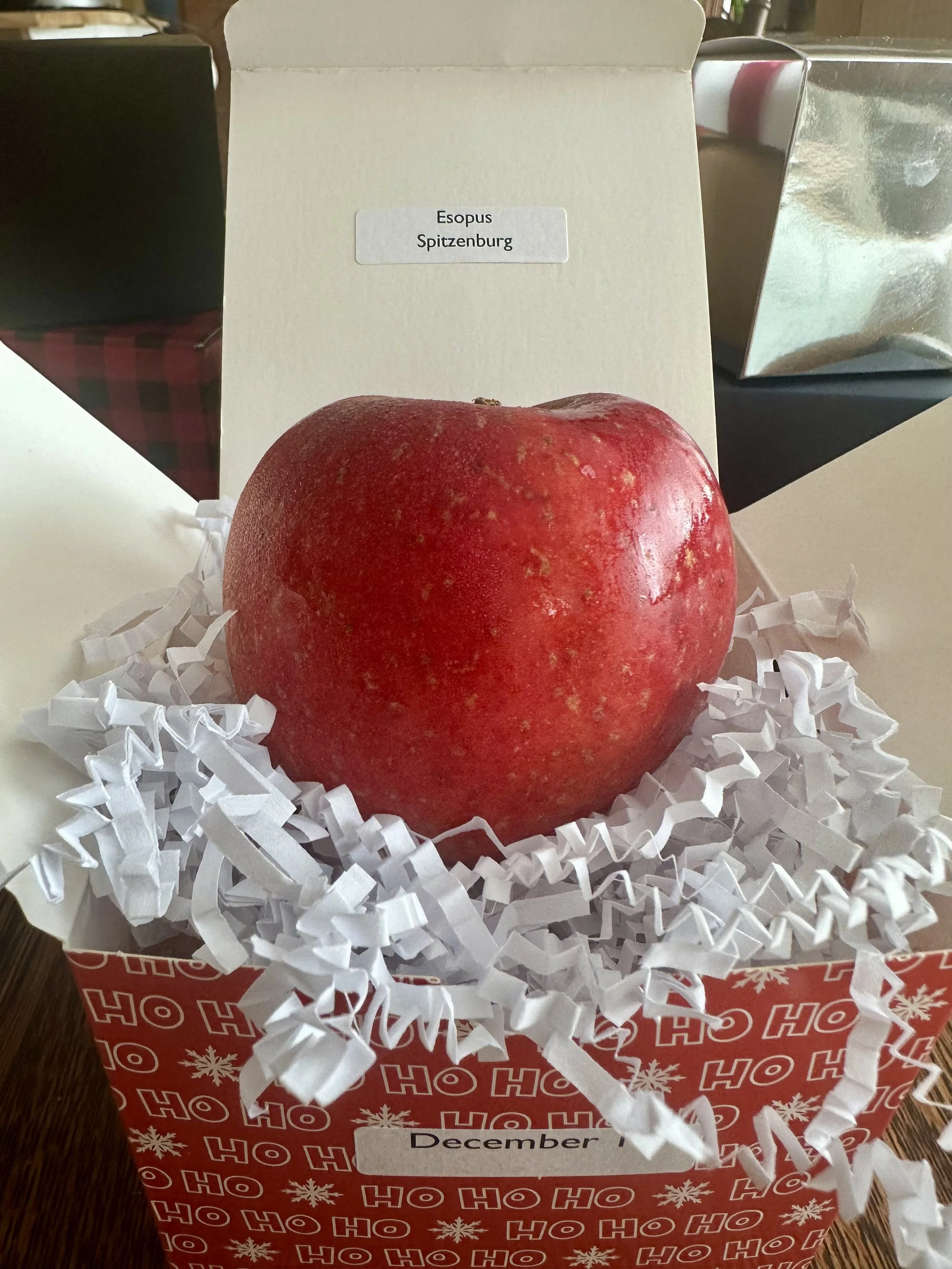 In researching ES, I found that it is a parent of Jonathan, and so two generations removed from an apple I wrote about just two days ago, the Ruby Jon. Apple variety family trees never fail to fascinate.