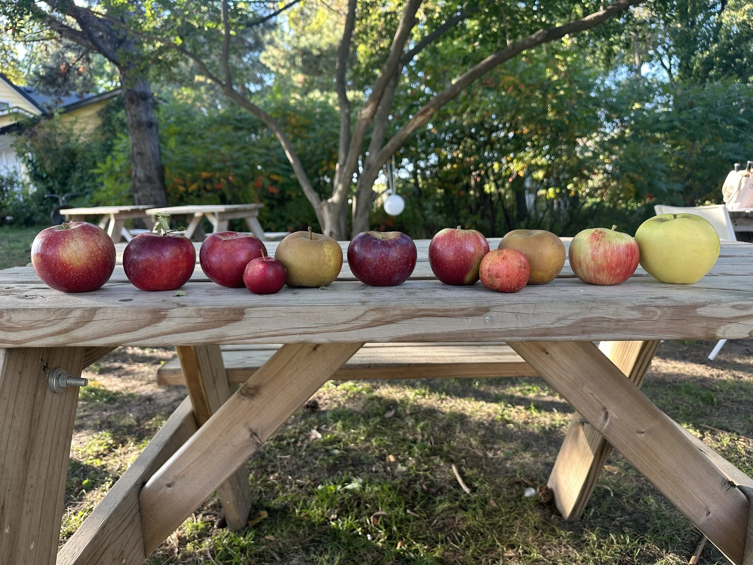 From left: Regent, Liberty, Macoun, Kerr, Egremont Russet, Cortland, Sweet Sixteen, Chestnut Crab, Zabergau Reinette, Honeycrisp, Ginger Gold. Check out the video for more details on each of these varieties.