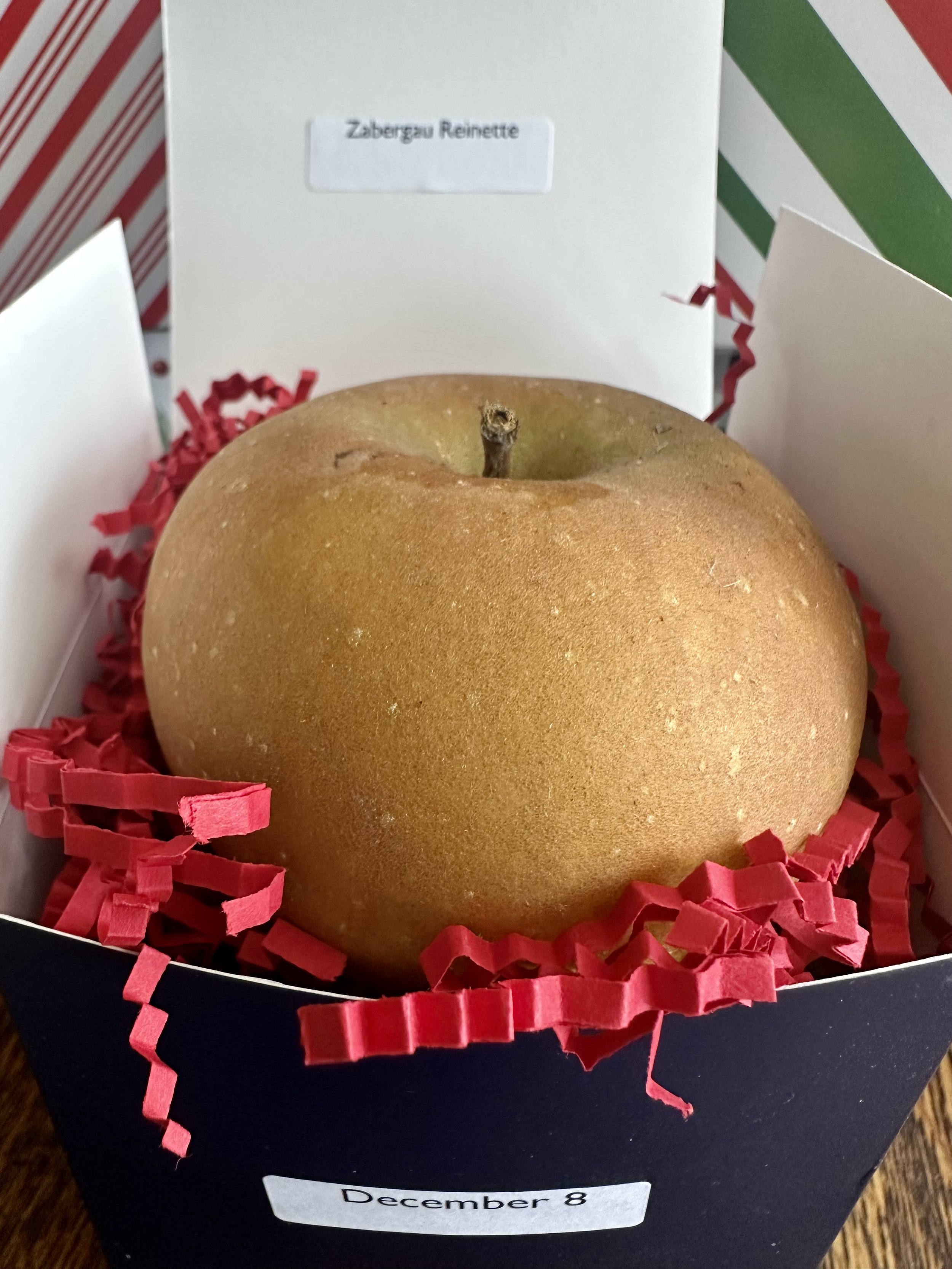 It’s a fine-grained apple: firm and dense with crunch and chew. Its flavors are subtle. Zabergau is a highly regarded eating and baking apple in Germany. I agree with both of those points and also think Zabergau is great in cider, as russets tend to be.